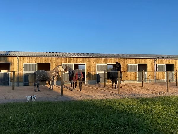 Écuries de propriétaires, dans un petit village. Grands boxes, carrière, rond de longe, 15 ha de prés et de nombreuses balades.