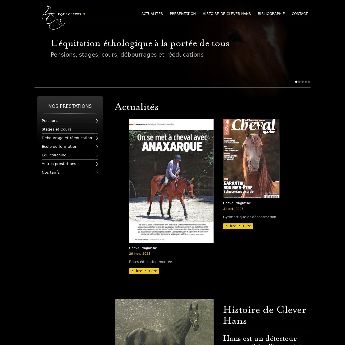 Le nom Equi Clever H fait référence à l’idée d’un cheval acteur de la relation, capable d’analyse et d’adaptation. Le cheval n’est pas considéré comme un simple exécutant, mais comme un véritable partenaire, impliqué mentalement dans le travail proposé.