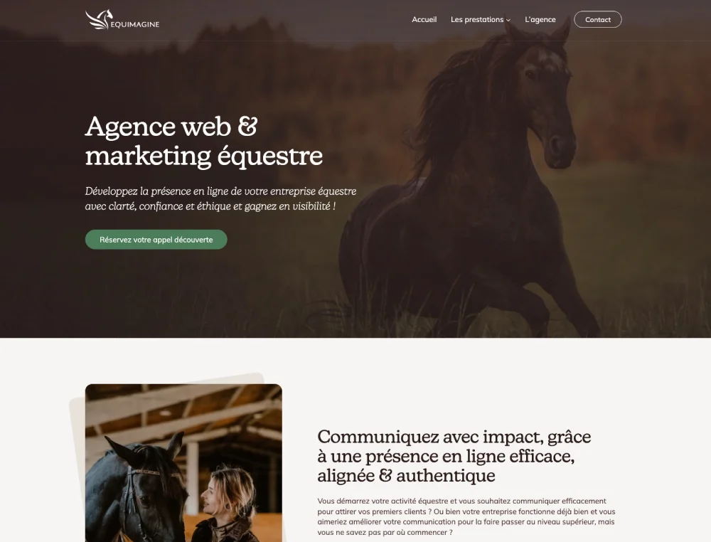 Equimagine est une agence web et marketing spécialisée pour le secteur équestre. Nous accompagnons les professionnels de la filière équine à développer leur visibilité en ligne et à attirer plus de clients.