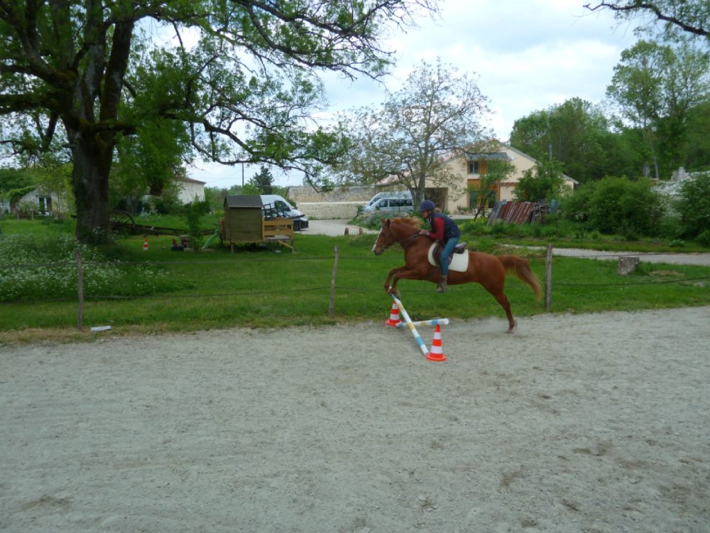 Une carrière en sable entretenue (hersée et rechargée régulièrement) est à disposition, avec des équipements de travail divers (cônes, barres, chandeliers, bâche...).