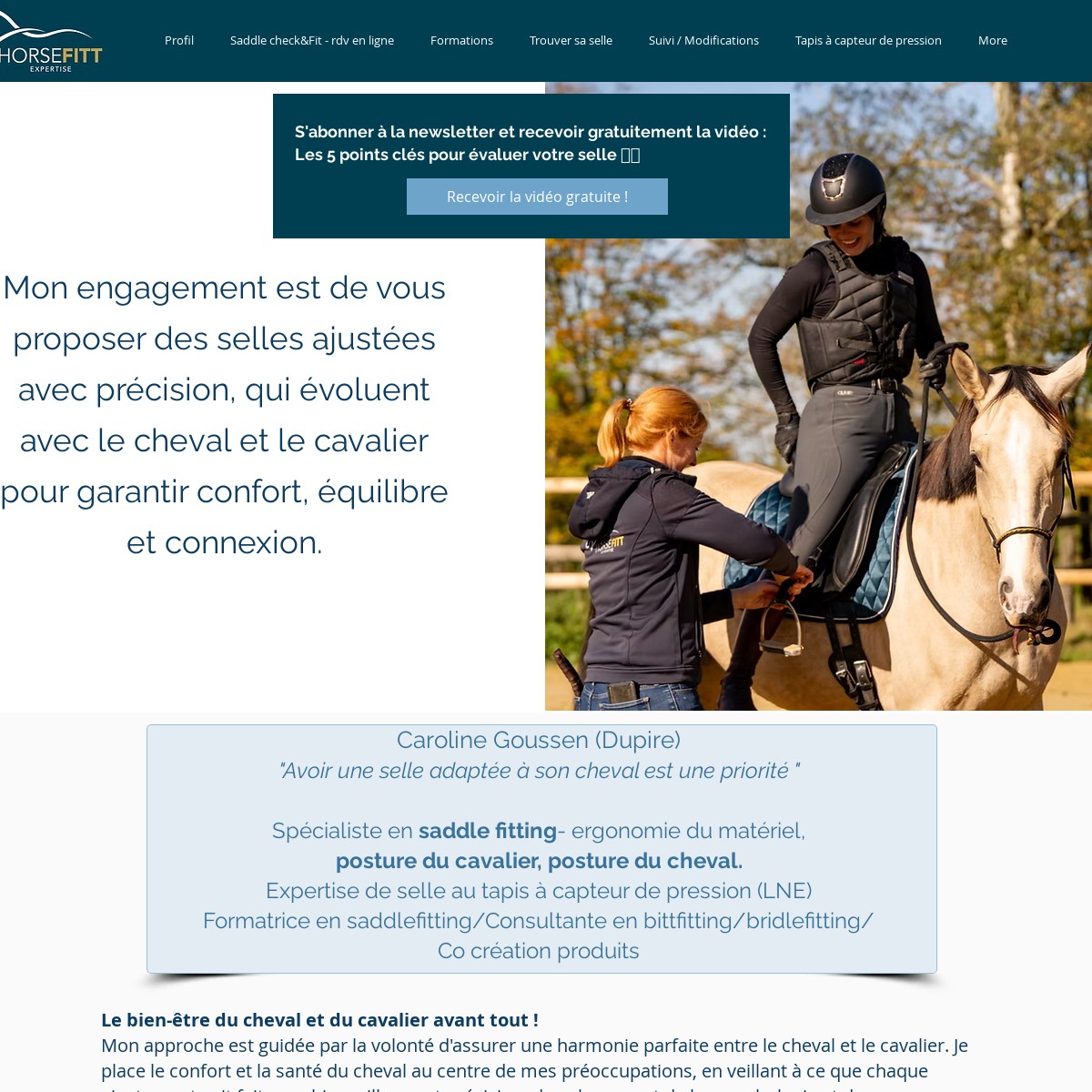 Spécialisée en saddle fitting depuis plus de 10 ans, Horsefitt Expertise accompagne les cavaliers dans le choix et l’adaptation de selles milieu et haut de gamme (Prestige, Erreplus) pour garantir confort, performance et respect de la biomécanique du cheval, toutes disciplines confondues.